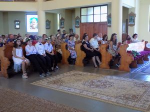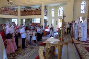 Vizita pastorală a cuprins de asemenea, clipele de intensă emoție prilejuite de primirea de către 8 copii a Trupului şi Sângelui Domnului din mâna Preasfinţiei Sale Florentin, Episcop de Cluj-Gherla. Adresându-se familiilor celor mai tineri credincioşi greco-catolici deveniţi membri deplini ai Bisericii Unite cu Roma, PS Florentin a spus: „Familia trebuie să fie şcoala iubirii, şcoala rugăciunii şi şcoala muncii – faceţi în aşa fel încât familia să fie, prin unitatea şi prin iubirea ei, o lumină în lume. Faceţi ca această luminiţă a credinţei pe care copiii voştri au primit-o astăzi în suflete să poată creşte mare în continuare!”
